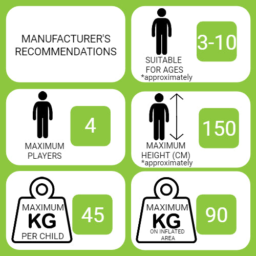 - Max weight: 90kg on inflated area (excluding splash pool)