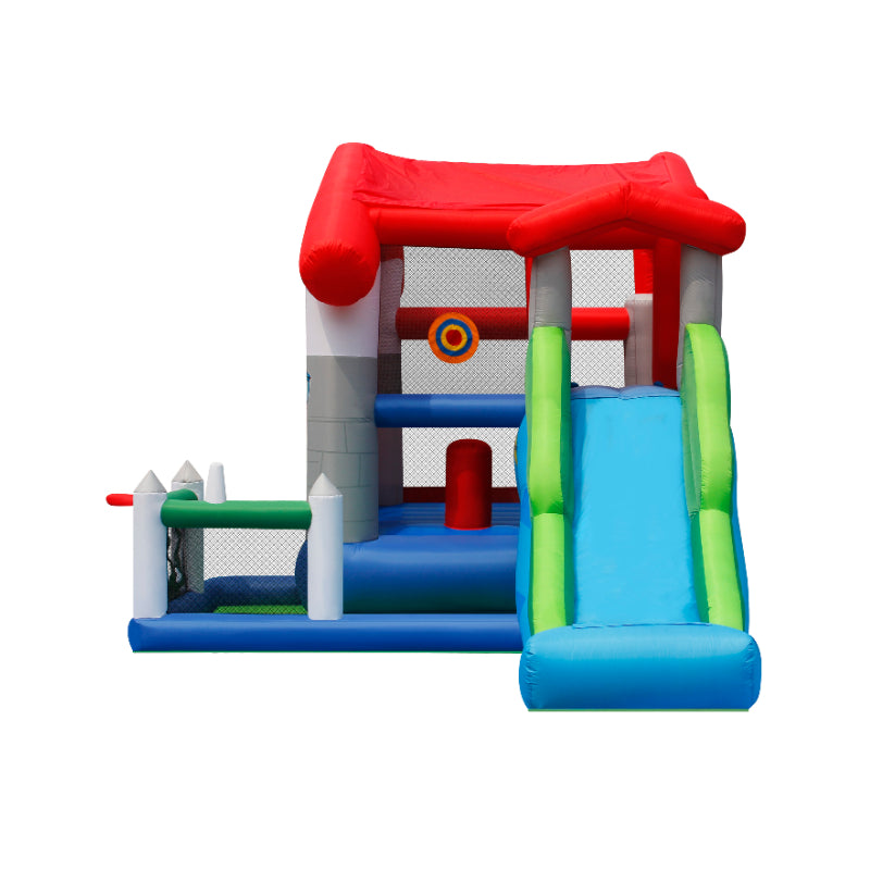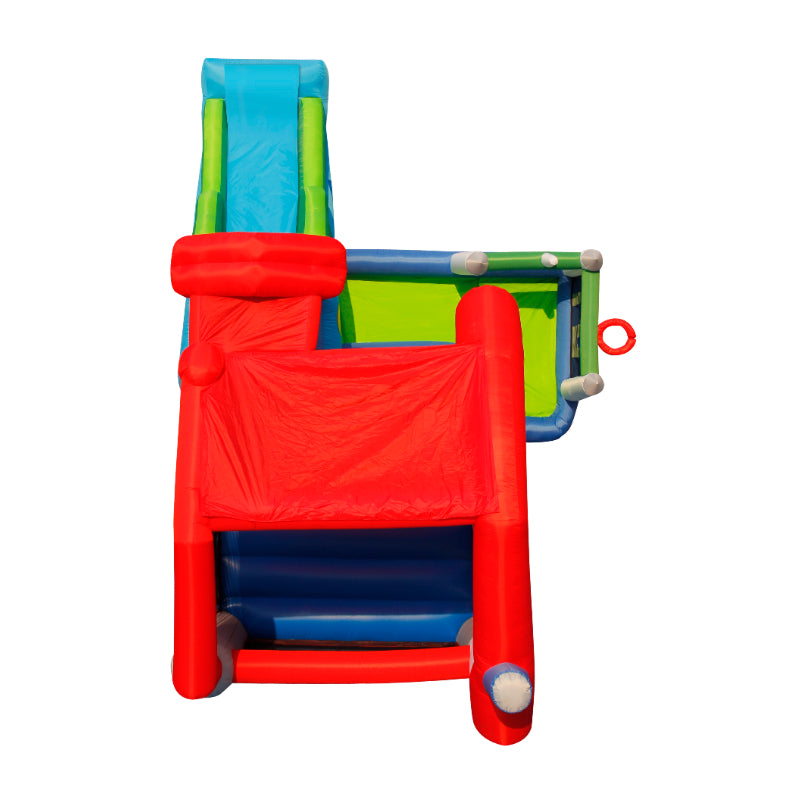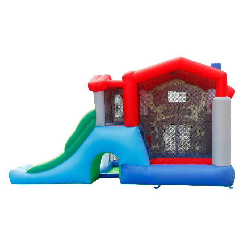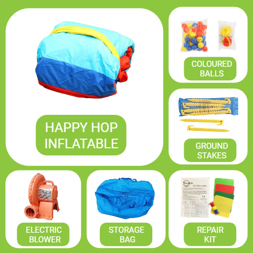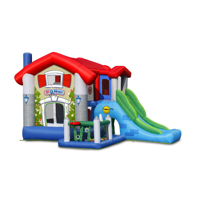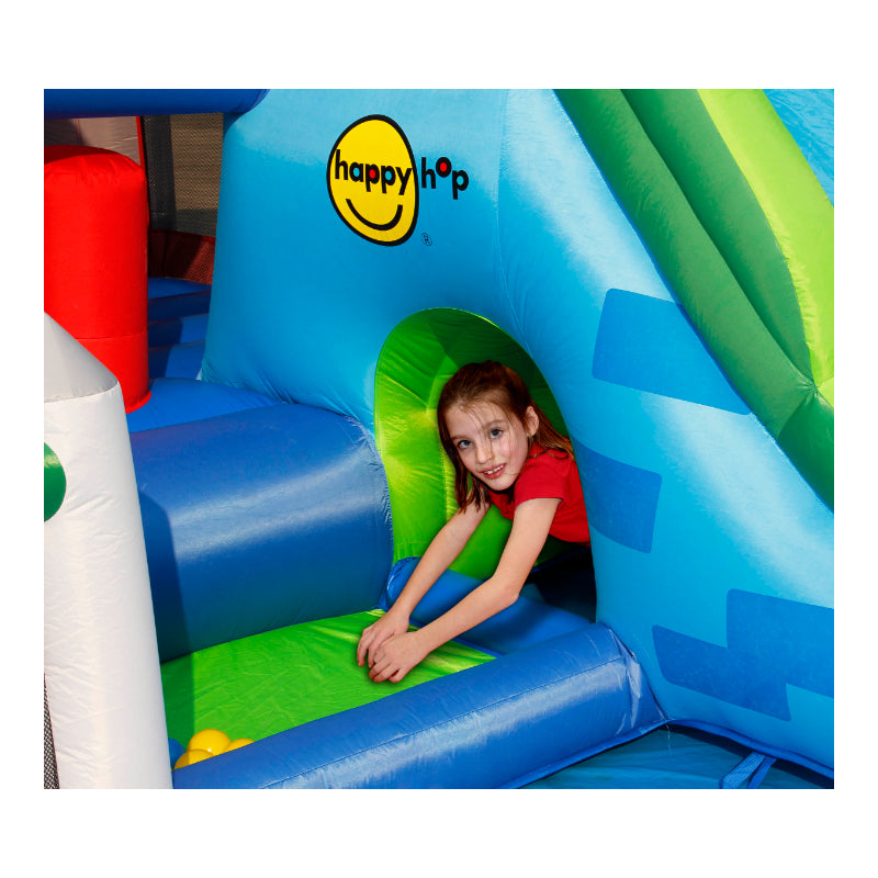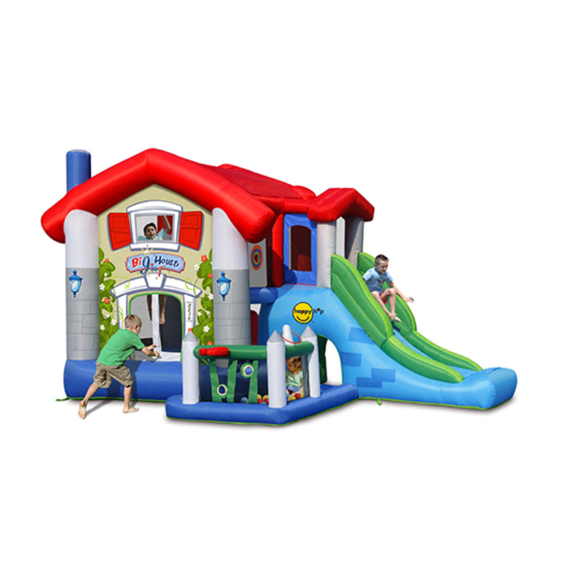 Introducing The Big House - the ultimate inflatable play centre from Happy Hop! This all-in-one masterpiece offers endless fun with its spacious jumping area and exciting ball pit. The added sun cover ensures kids can play comfortably in any weather. Crafted with top-quality materials, this inflatable guarantees safety and joy for your little ones. Watch as they jump, slide, and bounce with delight! Create unforgettable memories with The Big House from Little Kids Jumping Castles. Suitable for outdoor play, this is the perfect addition to any backyard party or event.
