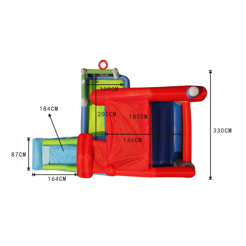 - Max weight: 180kg on inflated area (excluding ball pit area)
