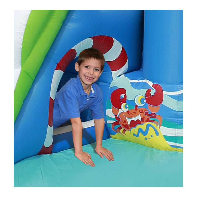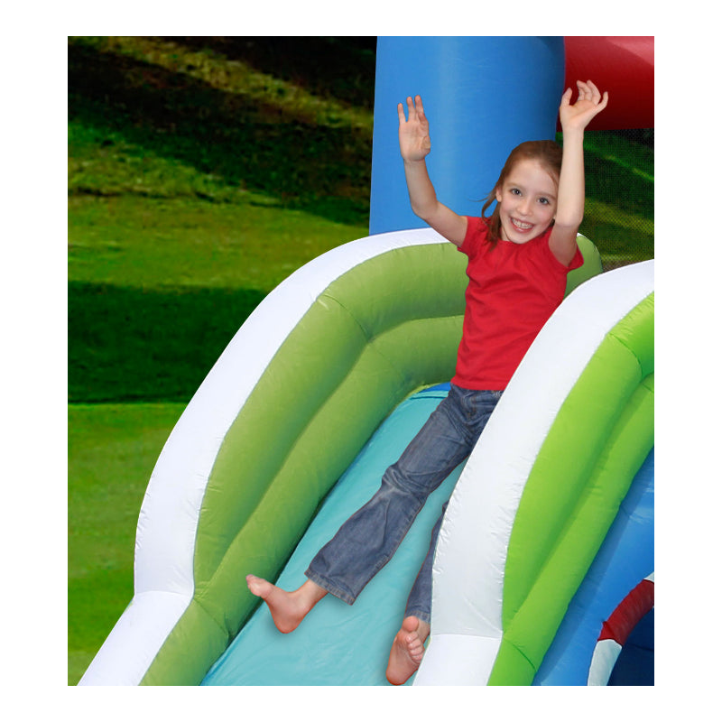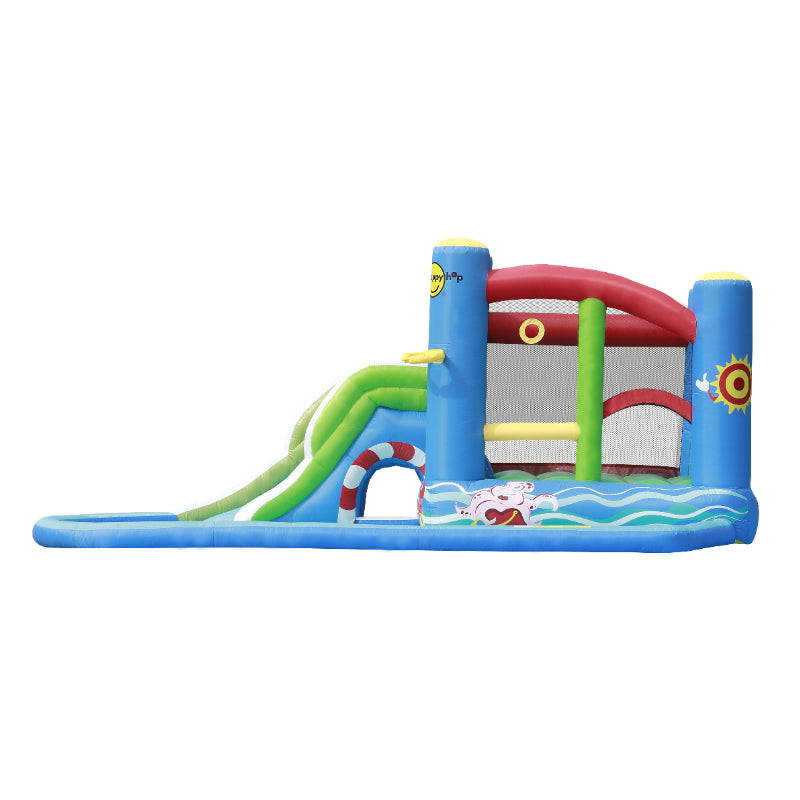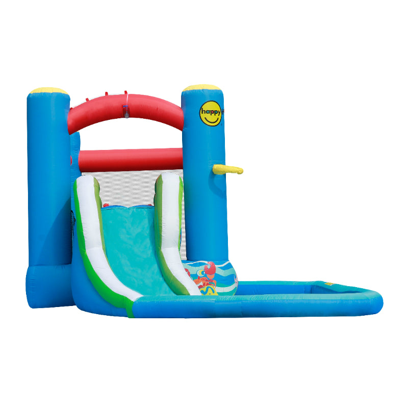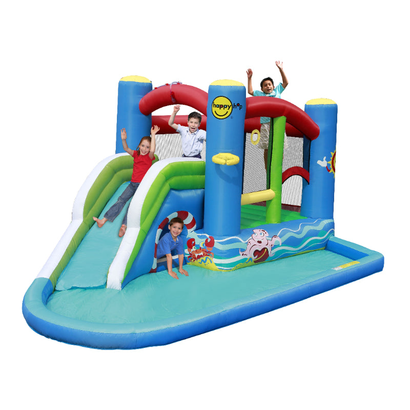 Dive into a world of aquatic fun with The Splash Pool by Happy Hop! This incredible inflatable features a thrilling waterslide, spacious jumping area, and a refreshing splash pool, providing hours of entertainment for kids. Crafted with top-quality materials, The Splash Pool guarantees a safe and exciting playtime. Jump, slide, and make a splash as you create unforgettable memories of joy and laughter. Get The Splash Pool today and bring the water park excitement home with Little Kids Jumping Castles! Perfect for creating summer fun and smiles all around.