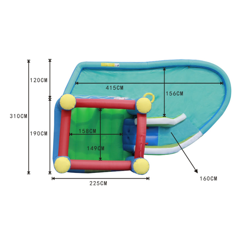 - Max weight: 135kg on inflated area (excluding splash pool)