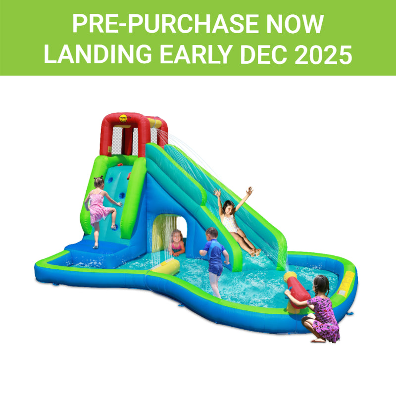 Introducing the new and exciting Happy Hop Inflatable Water Slide. Bursting with vibrant colours and action-packed features, this original design guarantees hours of outdoor fun. Kids can climb, slide, splash, and spray in this all-in-one water play centre — perfect for sunny Aussie days. Whether it’s a backyard party or weekend entertainment, this inflatable is sure to be a hit. Bring home the ultimate in inflatable fun with Happy Hop, where adventure meets Aussie summer vibe!